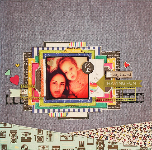 I decided to go with all things camera-related, as you can see. I've also added in some hearts to copy the image and also the 'like' option within instagram. I used an old photo with an (old) instagram filter and I used a rainbow of colours - again as inspiration from the image provided.